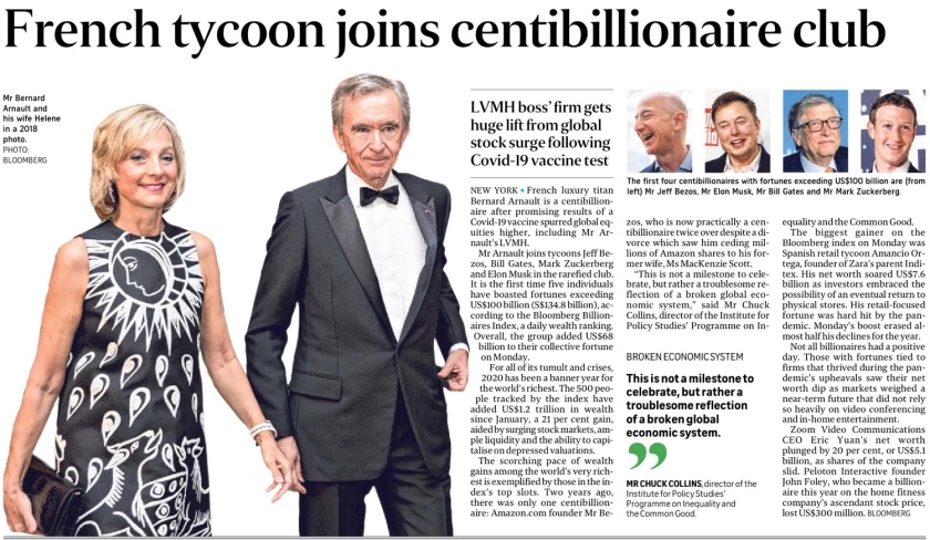 Meanwhile, the wealth of French luxury brand LVMH’s titan also crossed US$100M. It seems like a case of the rich getting richer since they have the reserve to invest in under-valued stocks that rose when the markets turned around.