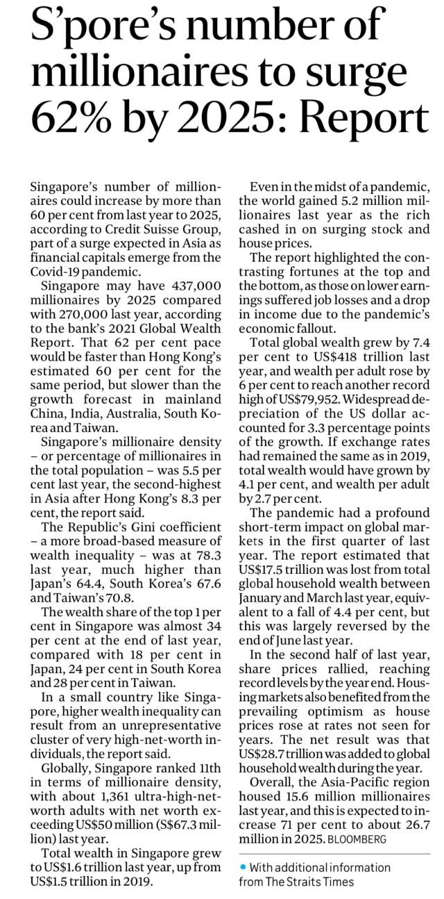 According to Credit Suisse Group, the number of millionaires in Singapore will increase by 62% by 2025. This rise can be attributed to the post-covid growth expected. Check this out…