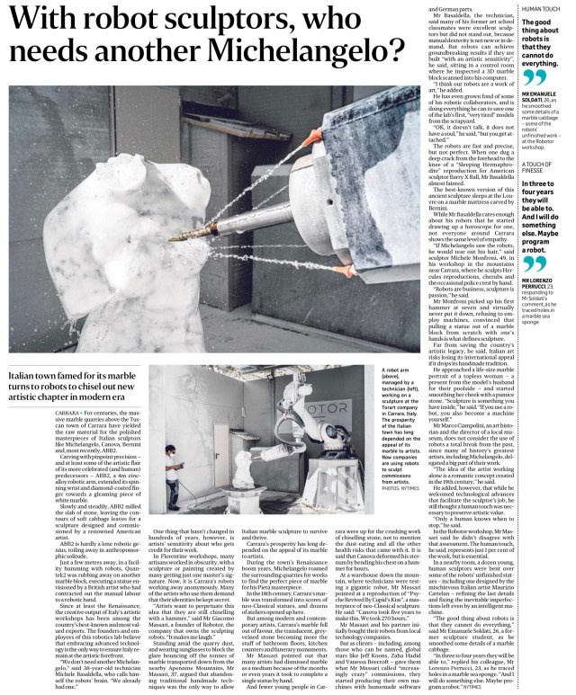 Every industry is experiencing disruption, including the sculpturing industry. The city where Michelangelo lived is seeing many sculptors employing the use of robot sculptors while they focus on the touching up work. Their role is to level up to control the robots. Will the economics work out for them? What’s your view?