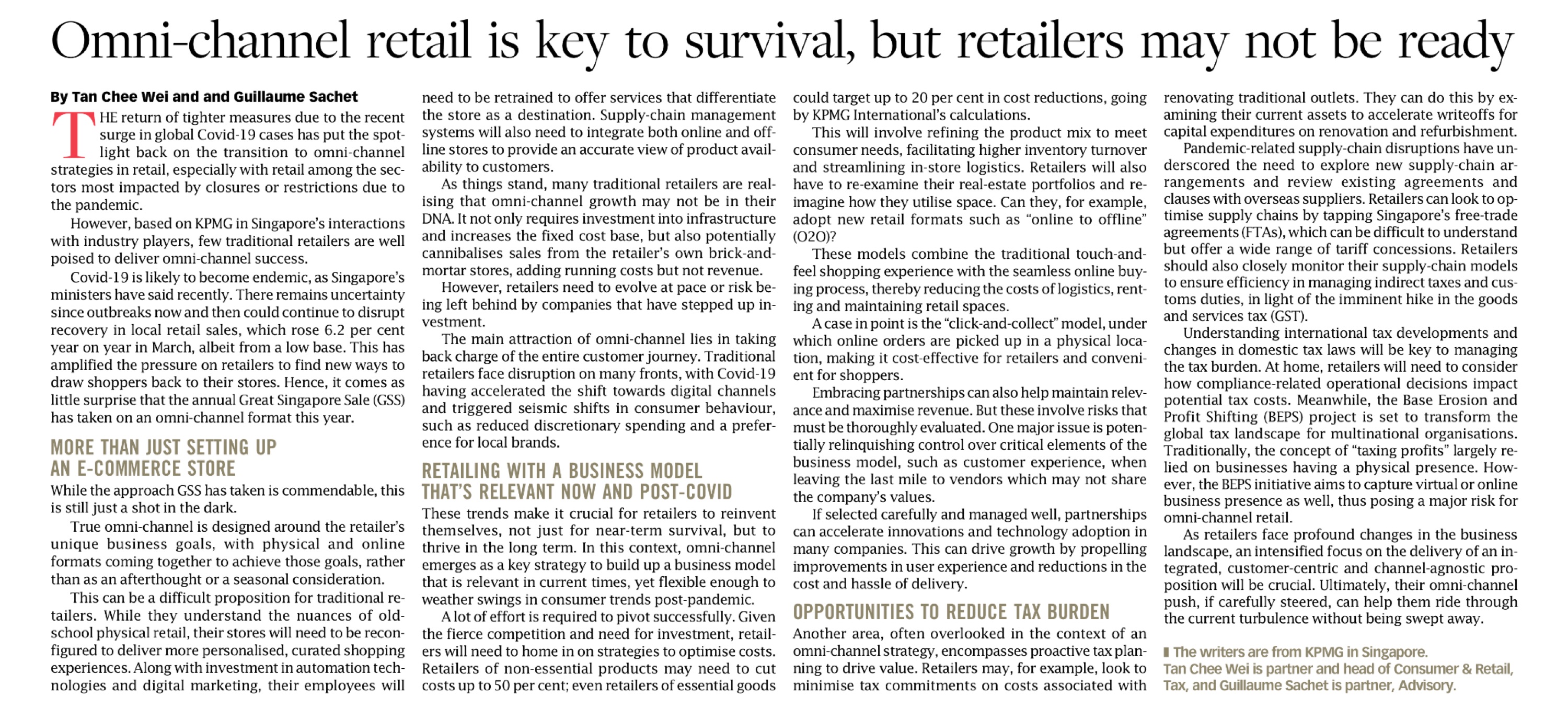 Some retailers (like Robinsons) have totally gone online. But is this the best thing to do since there are still customers who prefer to do physical shopping? There are others who have adopted an omni-channel approach – which I think may be the way to go. But it will require careful management of processes so that the experience of the shopper is not compromised.
